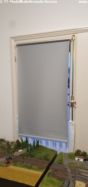 ImageImageIn der Zwischenzeit hatte Rüdiger mit der Hilfe von Heiko ein paar Rollo an den Fenstern des Austellungsraums angebracht. Diese sind nicht fest verbaut, sondern nur eingehangen. Sie sollen die Sonneneinstrahlung verringern und das Ausbleichen der Landschaft vermeiden.