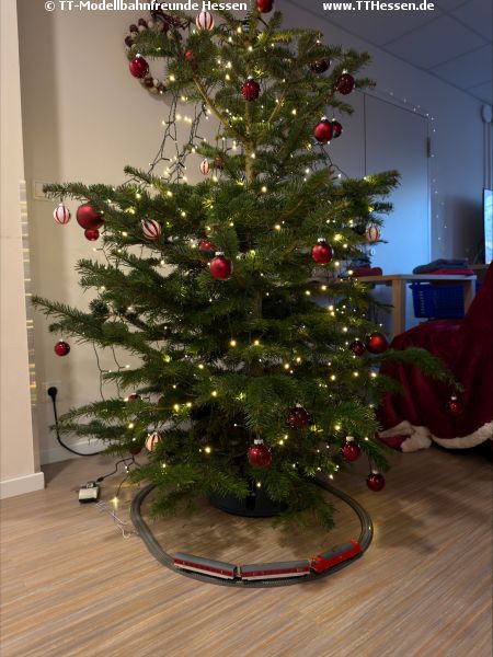 ImageZum Schluss des Jahres 2025 noch etwas Erfreuliches. Am 16.12.2025 wurde im Namen der TT-Modellbahnfreunde Hessen das im Sommer zur Tombola nicht verloste Tillig Starterset inkl. 2 Tüten Fruchtbonbons zu je 1Kg! an ein Kinderheim in Reiskirchen/Hessen verschenkt. Diese „Spende“ wurde mit dankenden Worten vom Leiter der Einrichtung entgegengenommen. 3 Tage später drehte der Zug schon Probeweise seine Runden unter dem Weihnachtsbaum für die Kinder der Einrichtung.