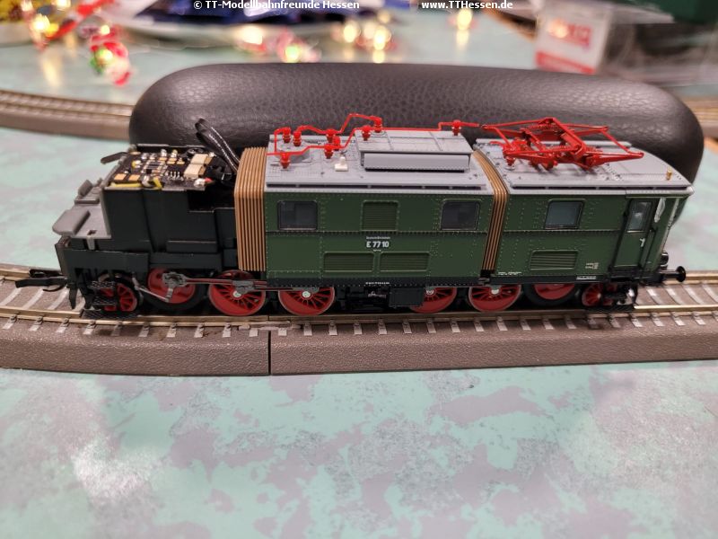 ImageImageAuch der „Weihnachtsmann“ war für 3 Mitglieder schon vor dem 24.12. aktiv und brachte die E77 Museumslok der DR in Ep.VI mit, welche auch gleich mit Decoder ausgestattet wurde und auf dem Testkreis ein paar Einfahrrunden absolvierten- Leider war ein Decoder nicht richtig auf die ECU der Tillig Lok abgestimmt, wodurch es Probleme mit der Lichtsteuerung gab.
