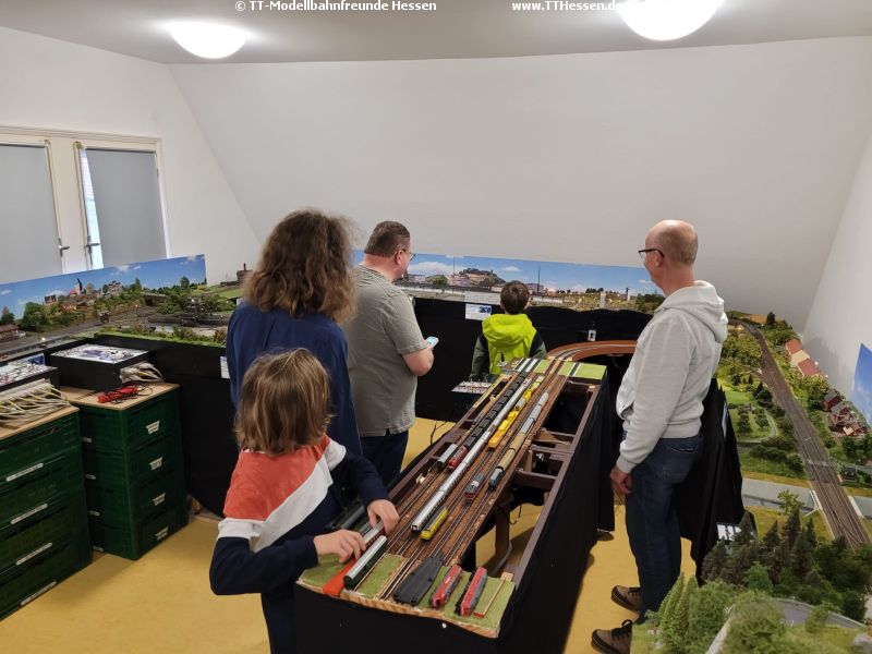 ImageImageImageImageHeute konnten wir zudem 5 Gäste begrüßen. Markus mit seinen Söhnen besuchte uns bereits beim vorletzten Treffen und Andy brachte Johann und Christian mit. Die beiden waren bereits mehrfach zu Gast bei uns. Die Jungs haben unsere Anlage sofort in Beschlag genommen und nach kurzer Einweisung drehten viele Loks ihre Runden.