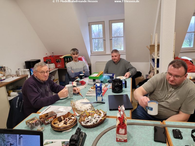Das für 2025 letzte Treffen begann für 3 Modellbahnfreunde mit dem Frühstück beim Bäcker in Neustadt. Danach ging es gut gestärkt in die Räume des „Hauses der Vereine“. Nach und nach trafen weitere Mitglieder ein.