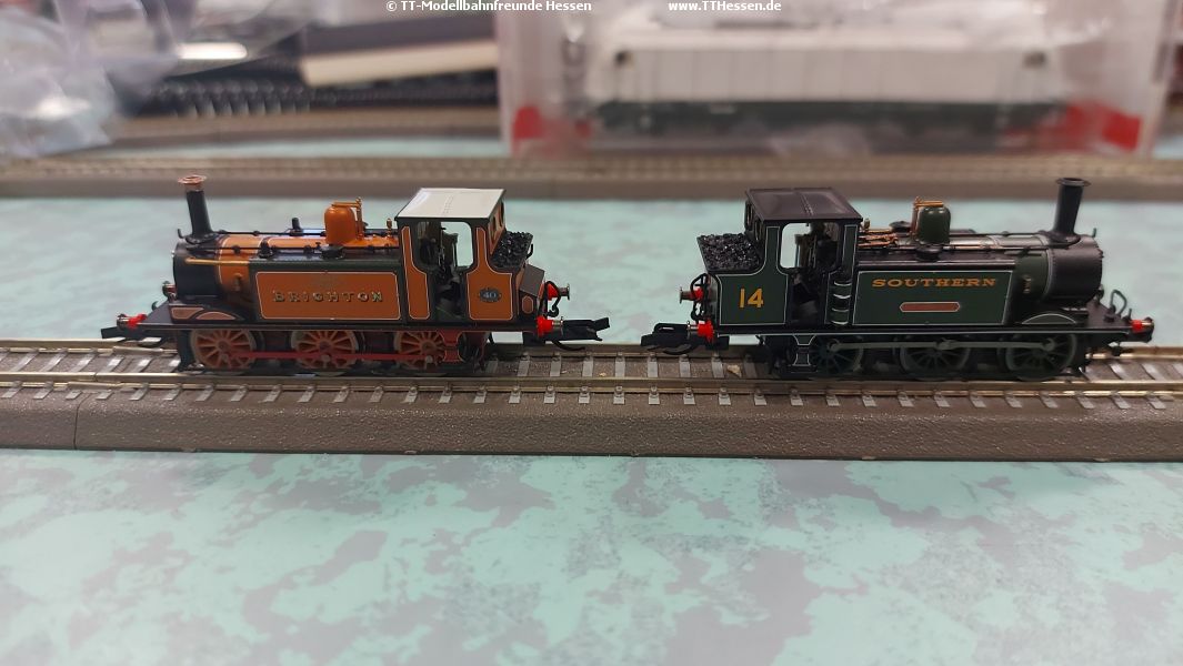 ImageImageImageEbenfalls mitgebracht wurden von Hornby einige Neuheiten in TT. Ein kompletter Personenzug und 2 Lokomotiven (Dampflok SR Terrier W14 Bembridge und Dampflok LB&SCR Terrier Brighton) Diese Modelle zeichnen sich durch ihre filigrane Bauweise im Führerstand aus und überzeugten aber auch durch einen ruhigen Lauf auf dem Testkreis.