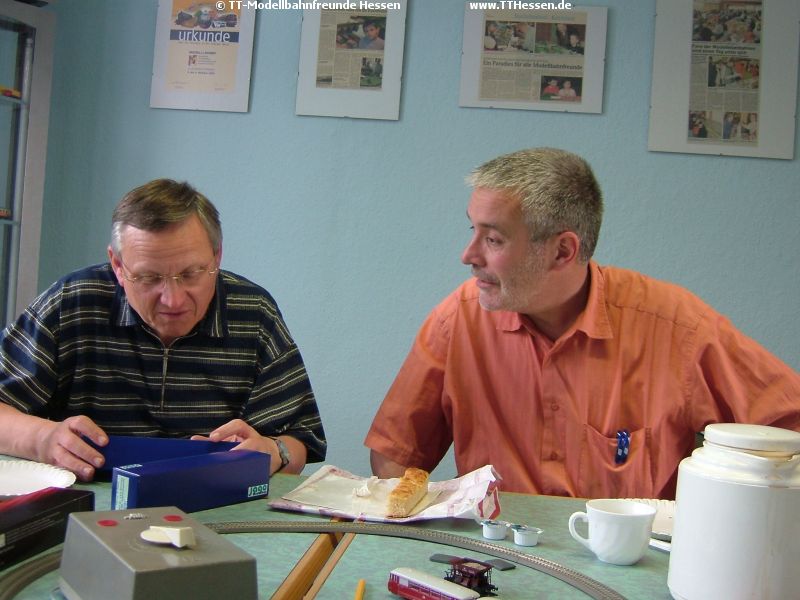 Image Image Auch der neu erschienene IR-Steuerwagen von Tillig konnte begutachtet und fotografiert werden. Der optische Eindruck der "Steuerseite" konnte keinen der Anwesenden überzeugen. Es ist deutlich zu erkennen, dass Steuerkanzel und Wagenkasten aus zwei Teilen besteht. Die Trennkante ist mehr als deutlich sichtbar und der Farbverlauf weißt Unstetigkeiten auf. Die Betrachtung der BR 55 macht da auf jeden Fall mehr Freude.