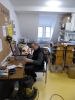 Die Umbauten an den Modulen hatten sich auf den letzten zwei Ausstellungen bewährt. Doch es sind auch ein paar Dinge aufgefallen, die wir noch verbessern wollen. Es hatte sich herausgestellt, dass nicht alle Holzbeine leicht in alle neuen Beinhalter passen. Daher machten sich Andreas und Edgar daran, alle diese Beine passend zu machen. Dafür hatte Edgar eine Schleifmaschine mitgebracht.