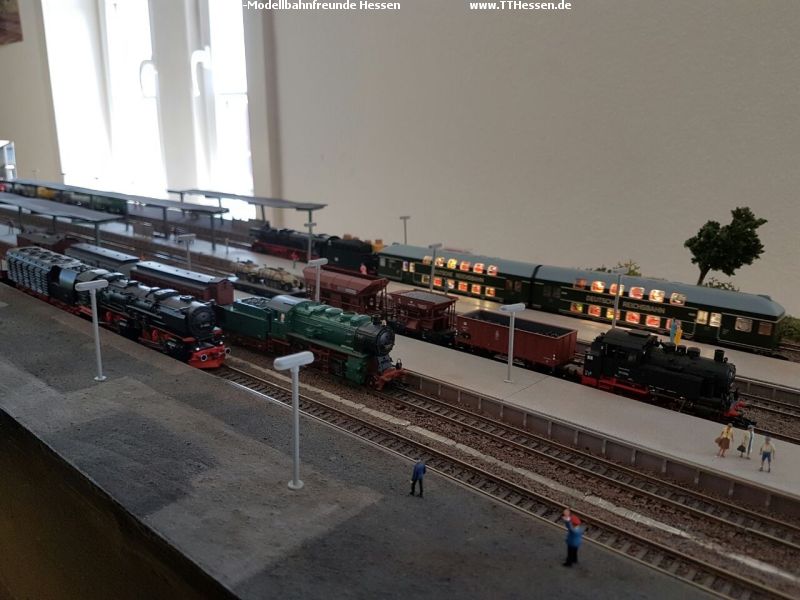 Nils beschäftigte sich weiter mit der Landschaftsgestaltung des Bahnbetriebswerkes und Edgar installierte am Modul „Kleingärten“ ein Blinkrelais für den Bahnübergang. Obwohl nicht viel Werbung gemacht wurde hatten sich doch einige Besucher in unseren Räumen eingefunden. Deshalb kümmerten sich Sebastian, Klemens und Ronald vorrangig um den Fahrbetrieb. Es wurden auch einige Videos erstellt, die demnächst auf YouTube zu sehen sein werden.