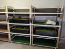 Heiko verlegte heute auf die Einlegeböden der Transportgestelle den noch fehlenden Teppich. Dieser verhindert das die Module während des Transportes verrutschen.