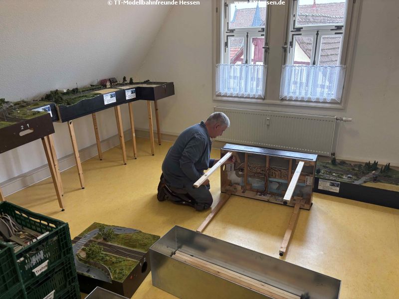ImageImageAufgrund der vielen Helfer konnte Heiko die restlichen Transportgestelle auf die neue Höhe kürzen. Ralf brachte noch neue stärkere Rollen für unser Doppelgestell mit, denn die alten hielten die Belastung nicht aus.